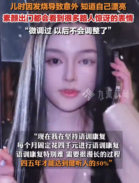 “现在我在坚持语训康复,每个月固定花四千元,进行语训康复特别难,需要很漫长的过程,四五年才能达到健听人的50%。”宸玥称,一直知道自己漂亮,哪怕是素颜出门都会看到很多路人惊讶的表情,“我小时候其实特别丑,很像男孩子,从出生到十岁都是短发,脑门大,五官立体,后来越来越多人说我美,才意识到自己长得还不错。”