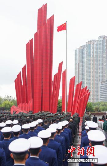 4月23日,江苏南京,庆祝渡江战役胜利暨南京解放77周年升国旗仪式在渡江胜利纪念馆渡江胜利纪念广场举行。图为升国旗仪式。中新社记者 泱波 摄