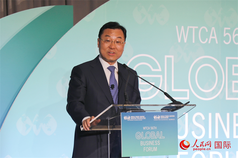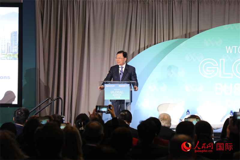 人民网费城4月20日电 (记者李志伟)4月20日,中国驻美国大使谢锋应邀出席在费城举办的第五十六届世界贸易中心协会全球商业论坛开幕式并发表主旨演讲,面向来自中、美等50多个国家和地区的近500名工商界代表,深入宣介“十五五”规划新机遇,呼吁共创中美关系新未来。