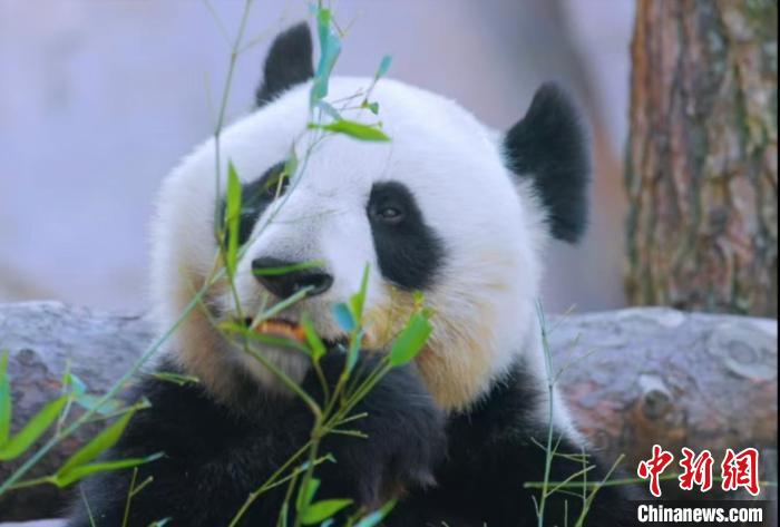 大熊猫在亚布力熊猫馆吃竹子 亚旅投集团供图