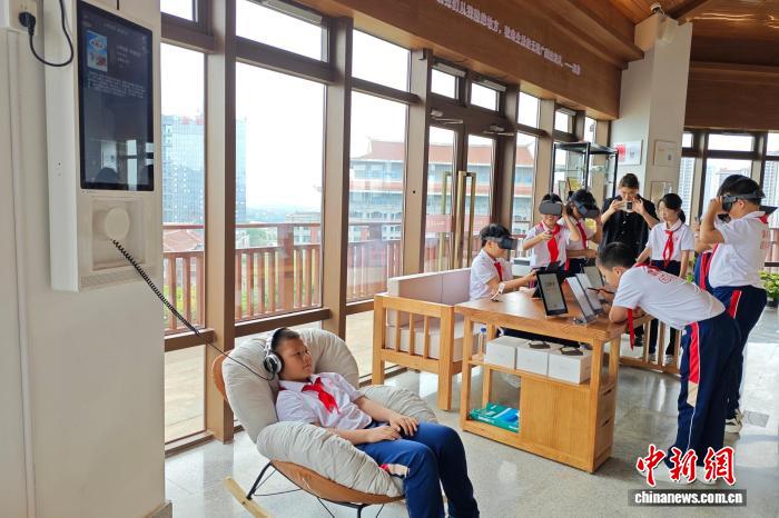 23日,“行走的阅读·书香集美”全民阅读活动在厦门启动。图为学生们在集美塔阅读空间体验数字阅读设备。吴冠标 摄