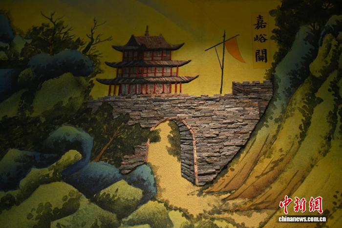 图为由戈壁碎石与大漠沙砾制作而成的嘉峪关关城题材石艺画。高莹 摄
